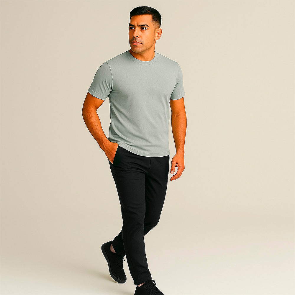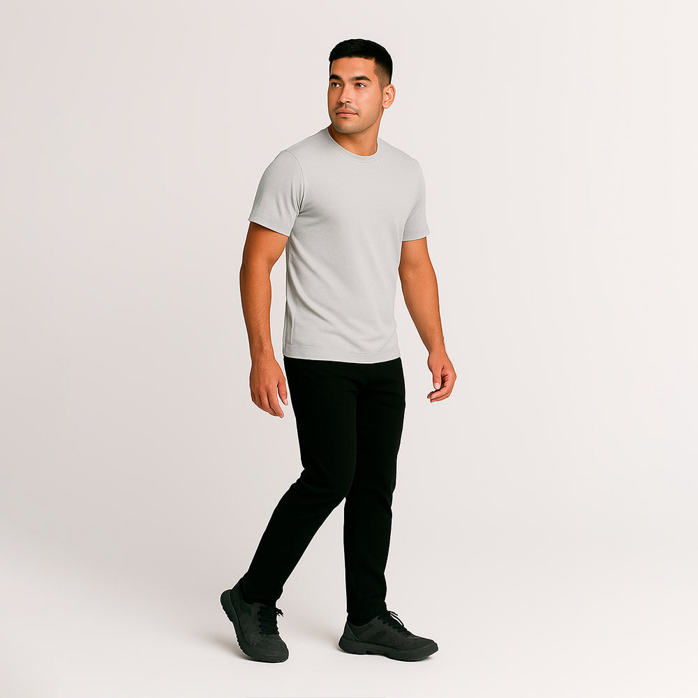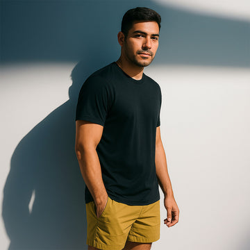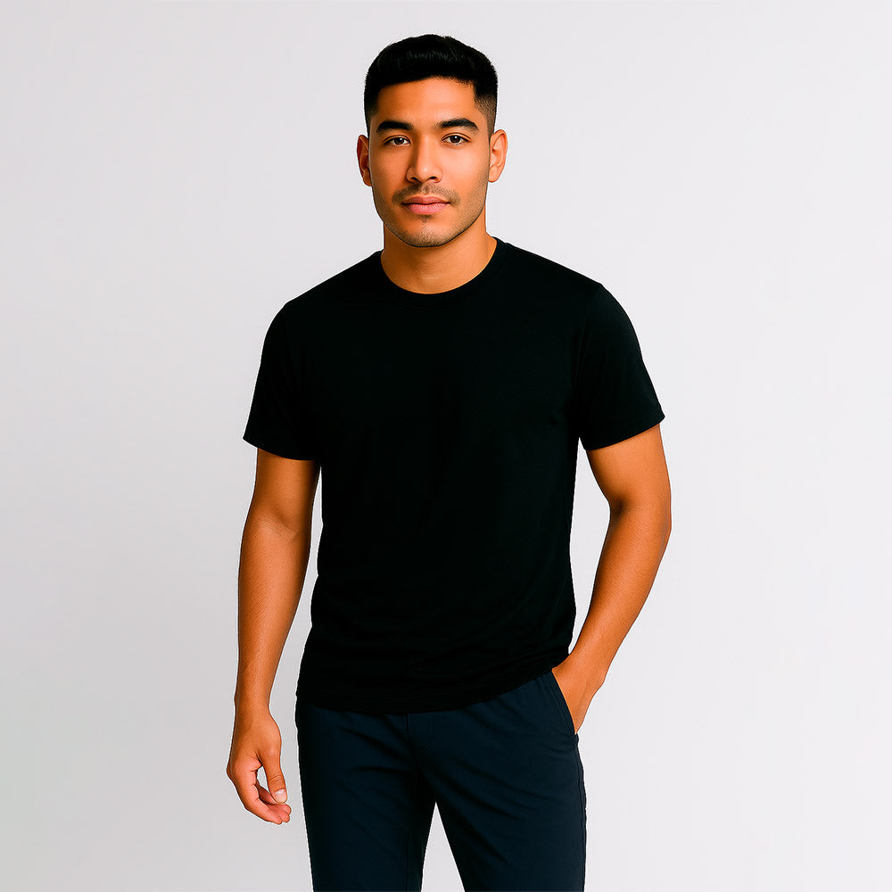 Ultra-soft, odor-resistant t-shirt with temperature-regulating technology for comfort you won't want to leave.
