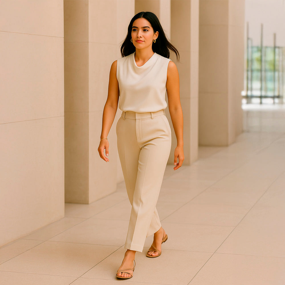 Ideal for warm climates, it combines freshness, structure, and timeless elegance. Whether paired with jeans, dress pants, or a skirt, its versatility and balance of simplicity and presence make it essential in a functional wardrobe.
